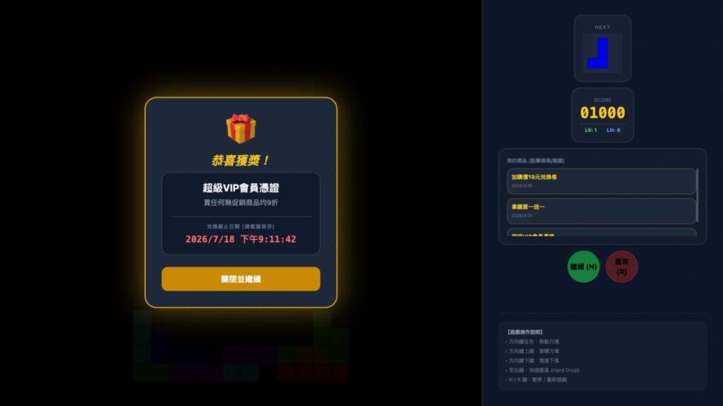 玩遊戲累積破關分數可以兌換獎品