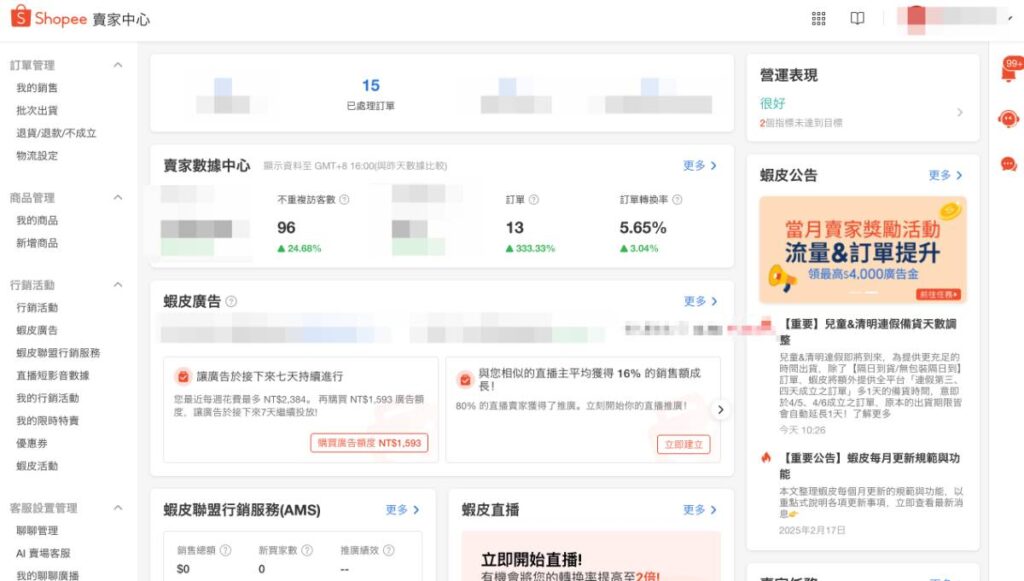 蝦皮是用瀏覽數算轉換率,其實應該是用訪客數,訪客數算這樣的數據應該是13%…顯示5.65%是用瀏覽數。訪客本來就會重複瀏覽才購買,看你賣場還有沒有其他產品,應該是用訪客數計算,我以前經驗200人看過,只會用3個人詢問,1人購買才是正常,但我以前都賣服務型商品。